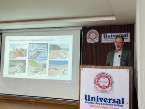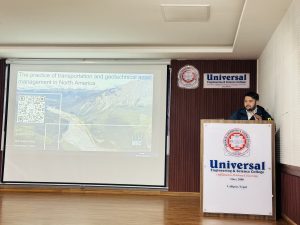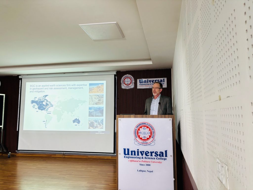 The Nepal Geotechnical Society (NGS), in collaboration with Universal Engineering & Science College (UESC) and SOTEN, successfully organized a special guest lecture delivered by Dr. Scott Anderson, Principal Engineer at BGC Engineering, Canada, and former Senior Leader at the U.S. Federal Highway Administration (FHWA).
