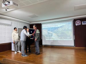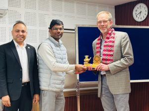 Following Dr. Anderson’s impactful presentation, a Token of Love was presented by Dr. Mandip Subedi (Immediate Past President, NGS), Er. Jibendra Mishra (Vice President, NGS), and Er. Sadhuram Lamichhane (HOD, Department of Civil Engineering, UESC) in appreciation of his contribution.